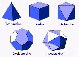 Los cinco poliedros regulares convexos fueron observados por Platón, quien maravillado por sus propiedades, asoció cada uno de ellos a un «elemento» primigenio de su filosofía: aire, agua, tierra y fuego. Curiosamente, asoció el dodecaedro al «quinto elemento» o ente espiritual de su teoría de la materia. En esta estructura de pensamiento muchos ven la génesis de la teoría molecular, pues muchos elementos cristalinos tienen una estructura atómica que obedece a la forma de tales poliedros.