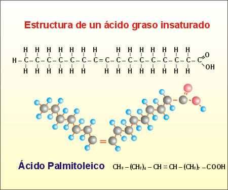 - Ácidos grasos insaturados: Tienen dobles enlaces entre los carbonos, suelen ser líquidos a temperatura ambiente.